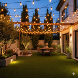 Una buena iluminación no solo te permite disfrutar de tu jardín durante más horas, sino que lo transforma por completo cuando el sol se va.